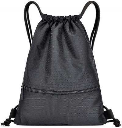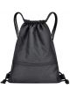Fecmall Adjustable Drawstring Backpack, Gym Bag with Zip, Waterproof, Backpack with Drawstring, Large Capacity, Drawstring Gym Bag for Yoga, Cycling, Climbing, Running, Playing, Black, black