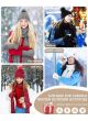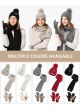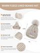 Womens Beanie Hat Scarf Gloves Set, Soft Fleece Lined Winter Hat with Pom Pom