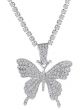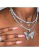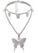 LOMBEX Butterfly Choker Necklace Gorgeous 2 Layered Crystal Pendant Necklaces Sparkly Butterfly Chain Jewelry for Women (Silver)