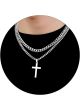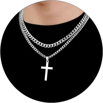 SHAMZBEST Layered Cross Necklace for Men Boys Stainless Steel Layered Cuban Link Chain 16-24 inch Christian Cross Pendant Religious Jewelry Gifts