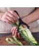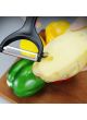 - ERGONOMIC The handle of the universal peeler is ergonomic and made of plastic. And with finger recesses, it is non-slip and sits comfortably in the hand.