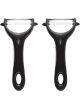 Fecmall Pack of 2 Universal Peelers, Stainless Steel, 14.5 x 7.5 cm, Black, Double-Edged Peeler, Ergonomic Handle for Potatoes, Carrots, Vegetables, Fruits